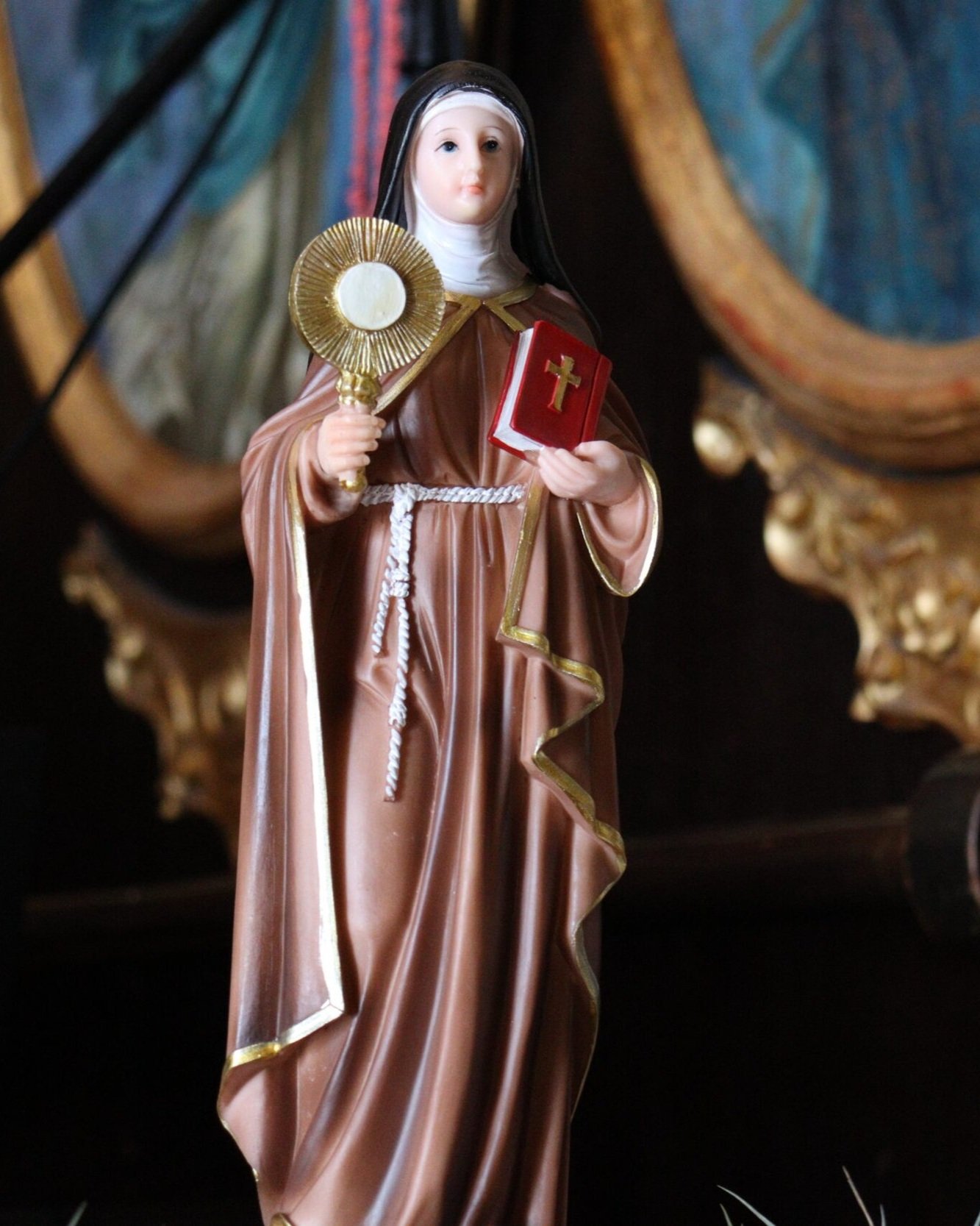 A imagem de Santa Clara de Assis retrata a sua vida de entrega e amor a Jesus Cristo através da vida consagrada.